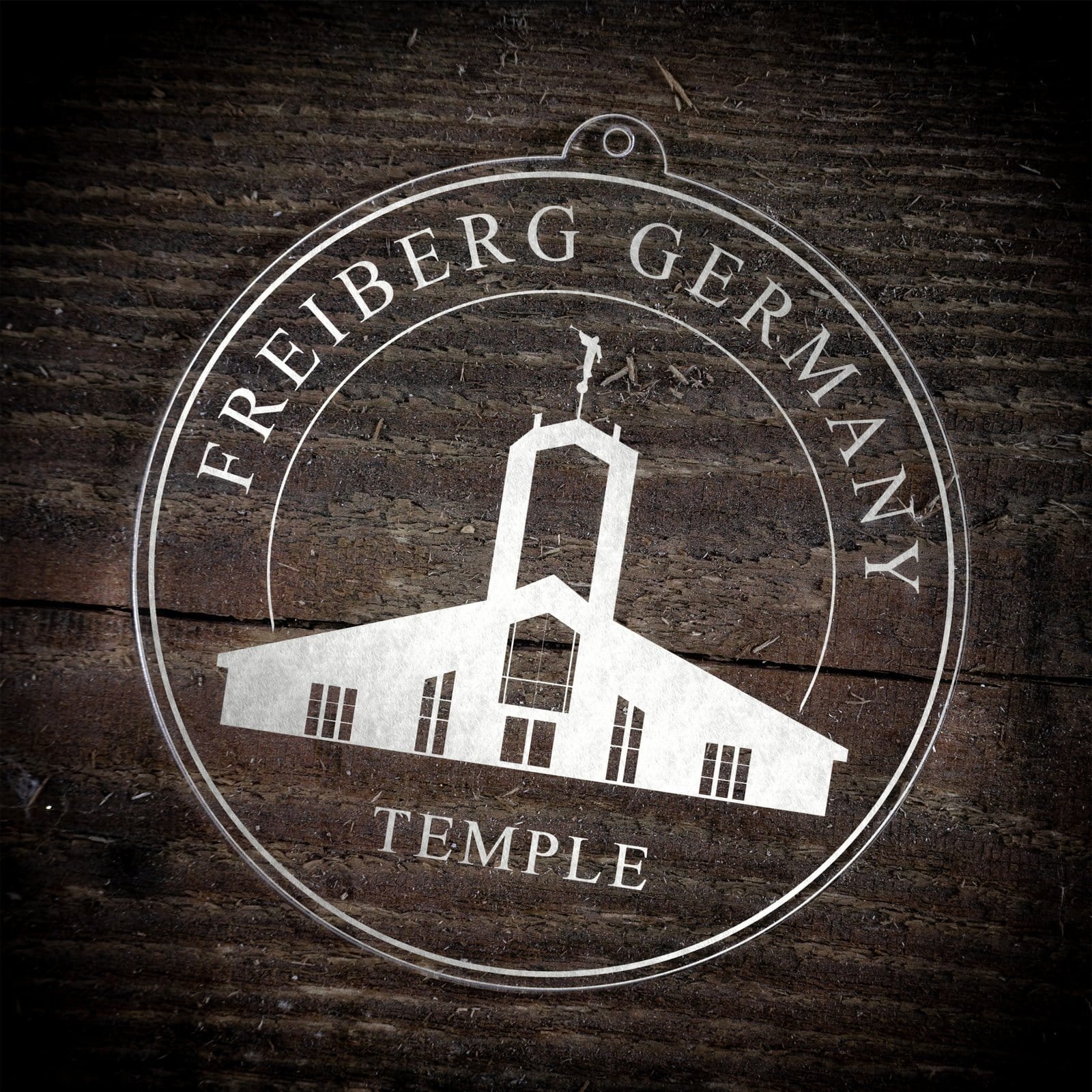 Made out of a lightweight and very durable transparent acrylic, this ornament will not weigh your tree down and can definitely withstand being dropped by the little ones should they get too curious around the tree.  The acrylic is cut into a 4 inch circle and then laser etched with the name of the temple and a graphic depicting an artistic representation of the Freiberg Germany Temple.
