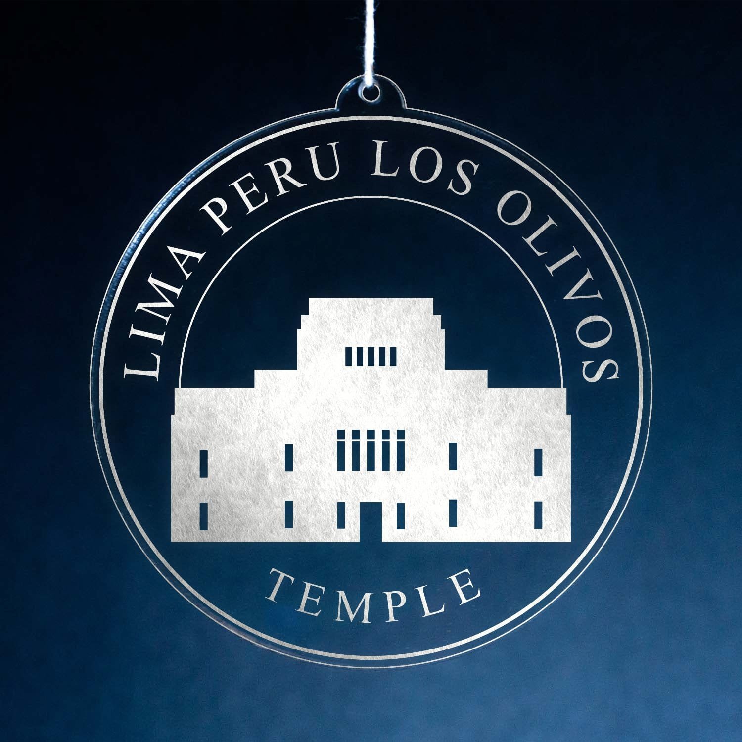 Made out of a lightweight and very durable transparent acrylic, this ornament will not weigh your tree down and can definitely withstand being dropped by the little ones should they get too curious around the tree. The acrylic is cut into a 4 inch circle and then laser etched with the name of the temple and a graphic depicting an artistic representation of the Lima Peru Los Olivos Temple.