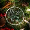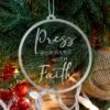 Each ornament is beautifully crafted from clear acrylic and engraved with frosted lettering that catches the soft glow of Christmas lights. Its modern, elegant design adds a touch of grace and meaning to your holiday décor, serving as both decoration and daily encouragement.