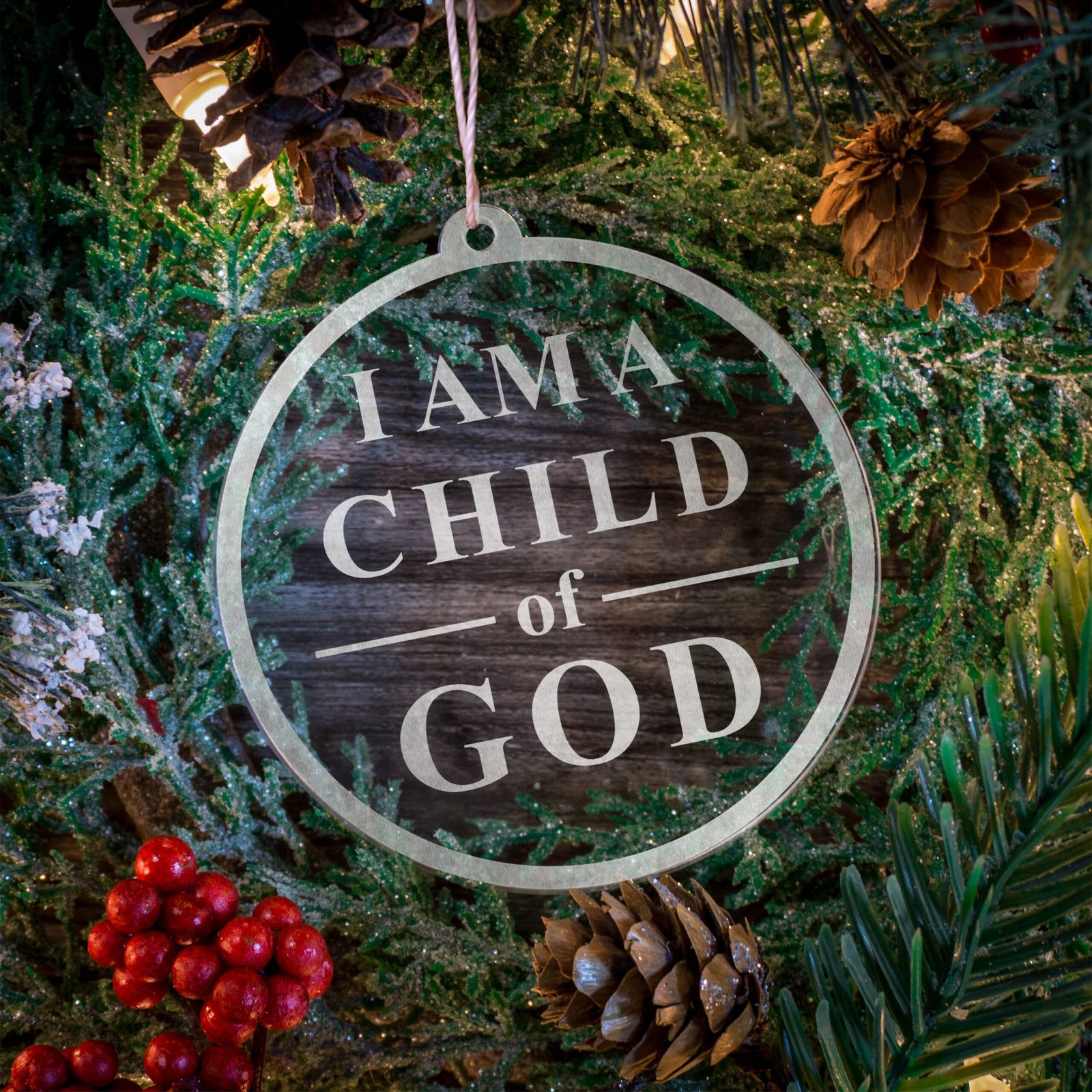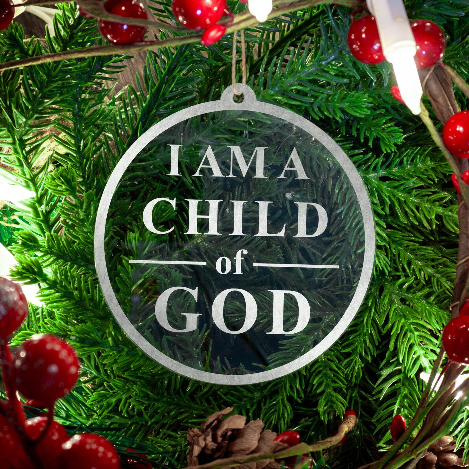 Made out of a lightweight and very durable transparent acrylic, this ornament will not weigh your tree down and can definitely withstand being dropped by the little ones should they get too curious around the tree. The acrylic is cut into a 3 inch circle and then laser etched with the artistic depiction.